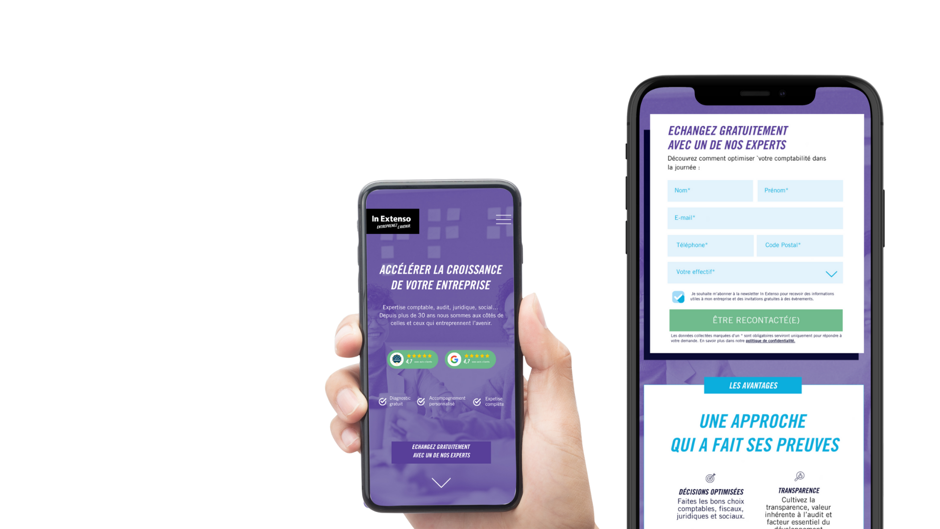 In Extenso m’a sollicitée pour concevoir la première maquette de landing page, suite à l’évolution de leur plateforme de marque.