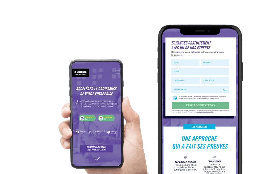 In Extenso m’a sollicitée pour concevoir la première maquette de landing page, suite à l’évolution de leur plateforme de marque.